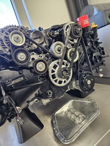 Anstelle des A/C Kompressors wird die Trockensumpfpumpe installiert