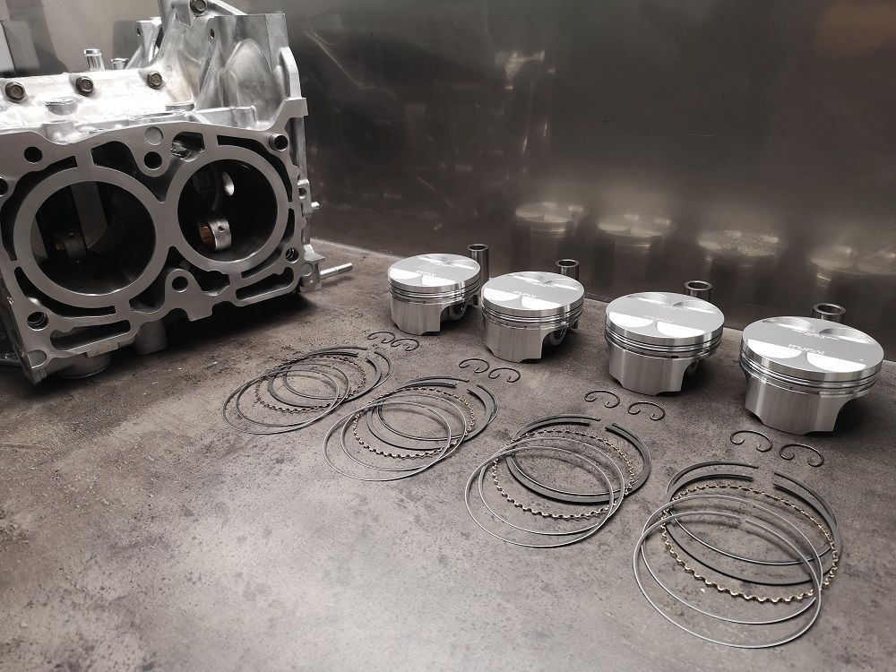 Neuaufbau eines EJ25 ShortBlocks: Dabei wurden RCM-Schmiedekolben verwendet. Dieses Setup ist für eine Leistung von 400 PS ausgelegt.