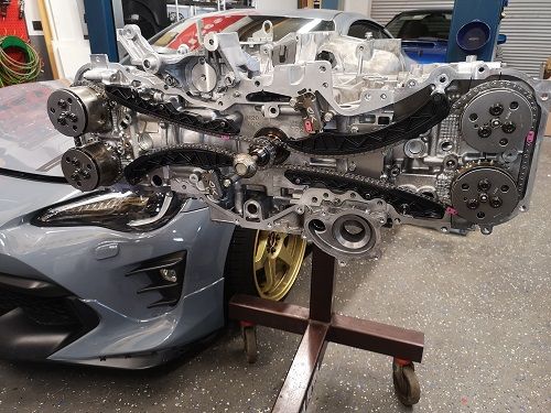 Nach 45.000km hat es leider diesen schönen GT86 auch erwischt, Pleuellagerschaden. Wir haben ihn komplett zerlegt, gesäubert, defekten Teile ausgetauscht und diverse "Kinderkrankheiten" im Bereich Ölversorgung beseitigt.